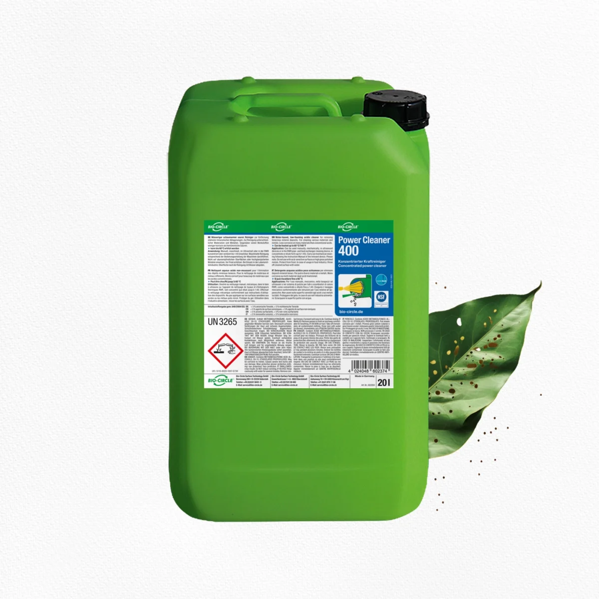POWER CLEANER 400 entfernt effektiv hartnäckige Ablagerungen wie Kalk, Urinstein, mineralische Ablagerungen, Rost, Oxidation und Anlauffarben. Er reinigt verschiedene Materialien, darunter Stahl, Edelstahl, Aluminium, Buntmetalle und Kunststoff, und ist dank seiner NSF-Zertifizierung auch für die Lebensmittelbranche geeignet.