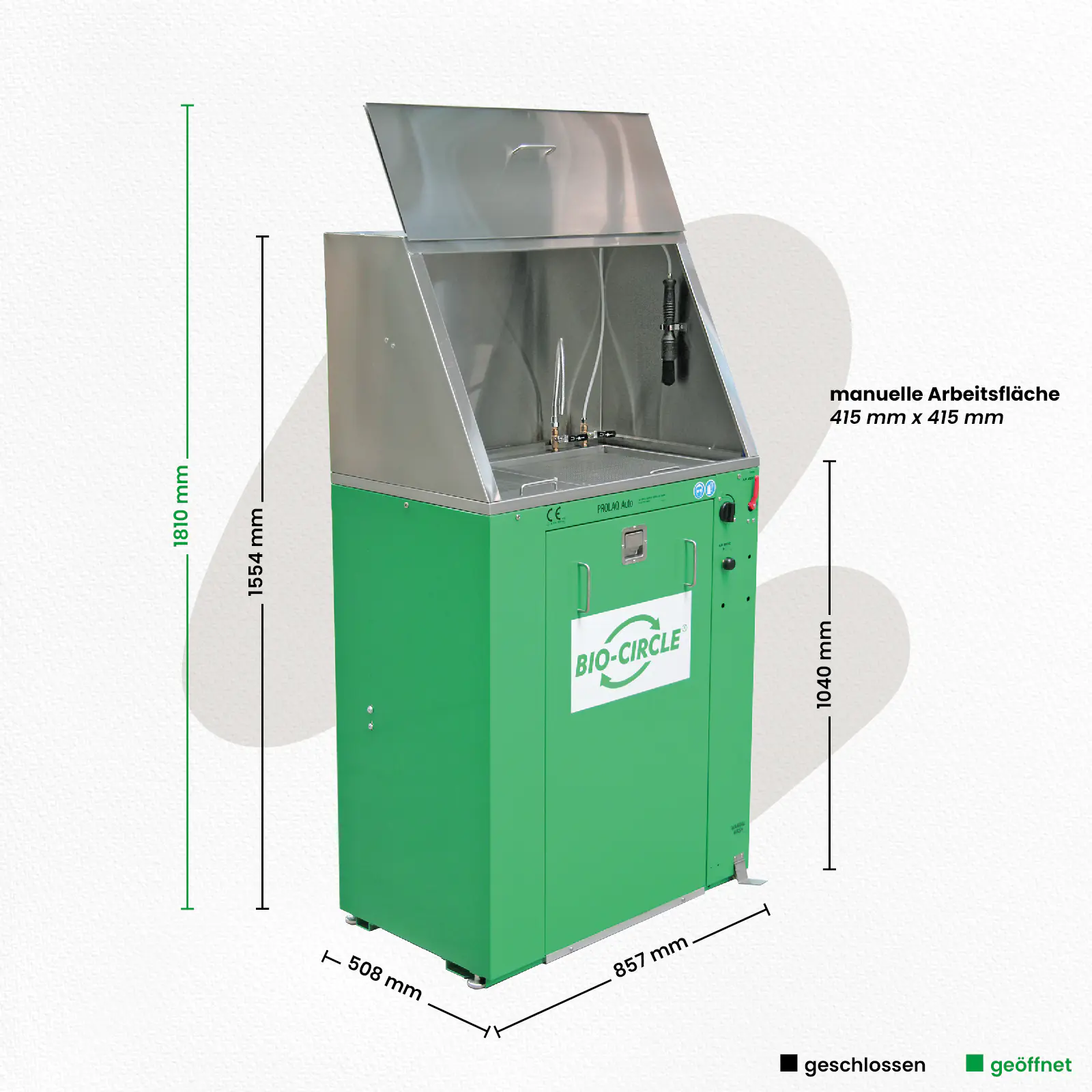 PROLAQ Auto kombiniert manuelle und automatische Reinigung für Lackauftrags- und Verarbeitungswerkzeuge. Mit seiner integrierten Absaugung und einer schließbaren Haube minimiert das System Gerüche und sorgt für einen sauberen und sicheren Arbeitsplatz. Die VOC-reduzierten PROLAQ-Reiniger bieten eine umweltschonende Alternative zu herkömmlichen Lösungsmitteln.